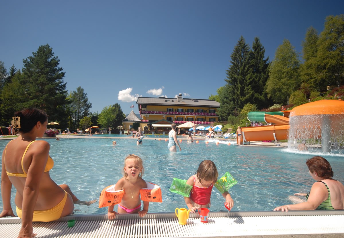 - Erlebnis-Freibad mit 3 Pools und 50-Meter-Wasserrutsche
